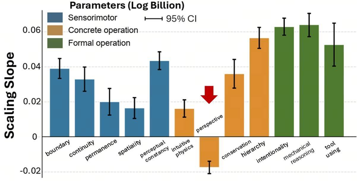 这篇论文也发现,空间智能似乎存在反范例效应的欢腾:更大的模子并不可更好地惩处空间智能任务。另外,在EASI的官方施展中也不错找到相通的形色,指出视角调养任务(Perspective-taking)照旧是最具挑战的基础身手之一。